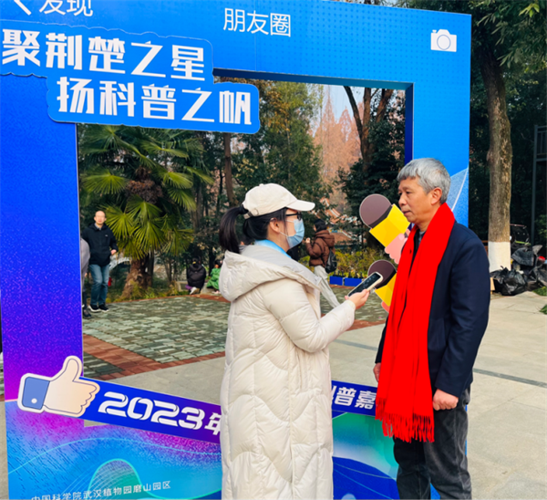 在中国科学院武汉植物园中心草坪,30米长的红毯迎来了“最亮的星”。湖北省十佳科技志愿服务队、湖北省科普短视频大赛获奖者、湖北省十佳科普教育基地、湖北省十佳科普达人、全国科普日活动优秀组织单位、湖北省科普工作者、全国最美科技工作者、院士科普工作室共8支代表队伍依次走上红毯,现场公众鼓掌欢呼。他们中有院士工作室代表、科研专家、大学教授、科普场馆工作者等。本报记者采访了部分代表,一起享受这场科普盛宴。