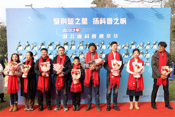 湖北省十佳科技志愿服务队、湖北省科普短视频大赛获奖者、湖北省十佳科普教育基地、湖北省十佳科普达人、全国科普日活动优秀组织单位、湖北省科普工作者、全国最美科技工作者、院士科普工作室共8支代表队伍依次走上红毯。