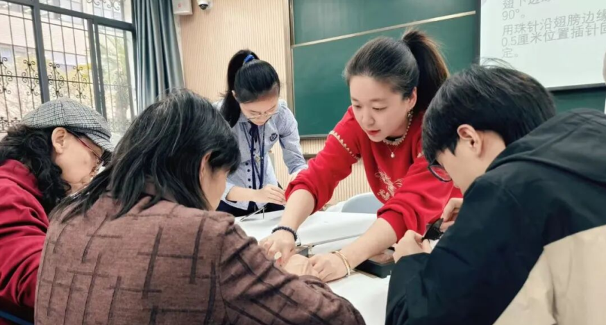科普参观结束后,大家一同前往第一教学楼教室,开启期待已久的蝴蝶标本制作环节。活动伊始,李晨老师发表致辞,既表达了对离退休教职工重返校园的欢迎,也阐述了此次活动以自然为媒介、促进代际融合的初衷,言语中充满温情与期许。随后,讲解员李书彦详细讲解了蝴蝶标本制作的流程与技巧,从材料处理到细节固定,每一步都清晰易懂,为手工实践打下扎实基础。