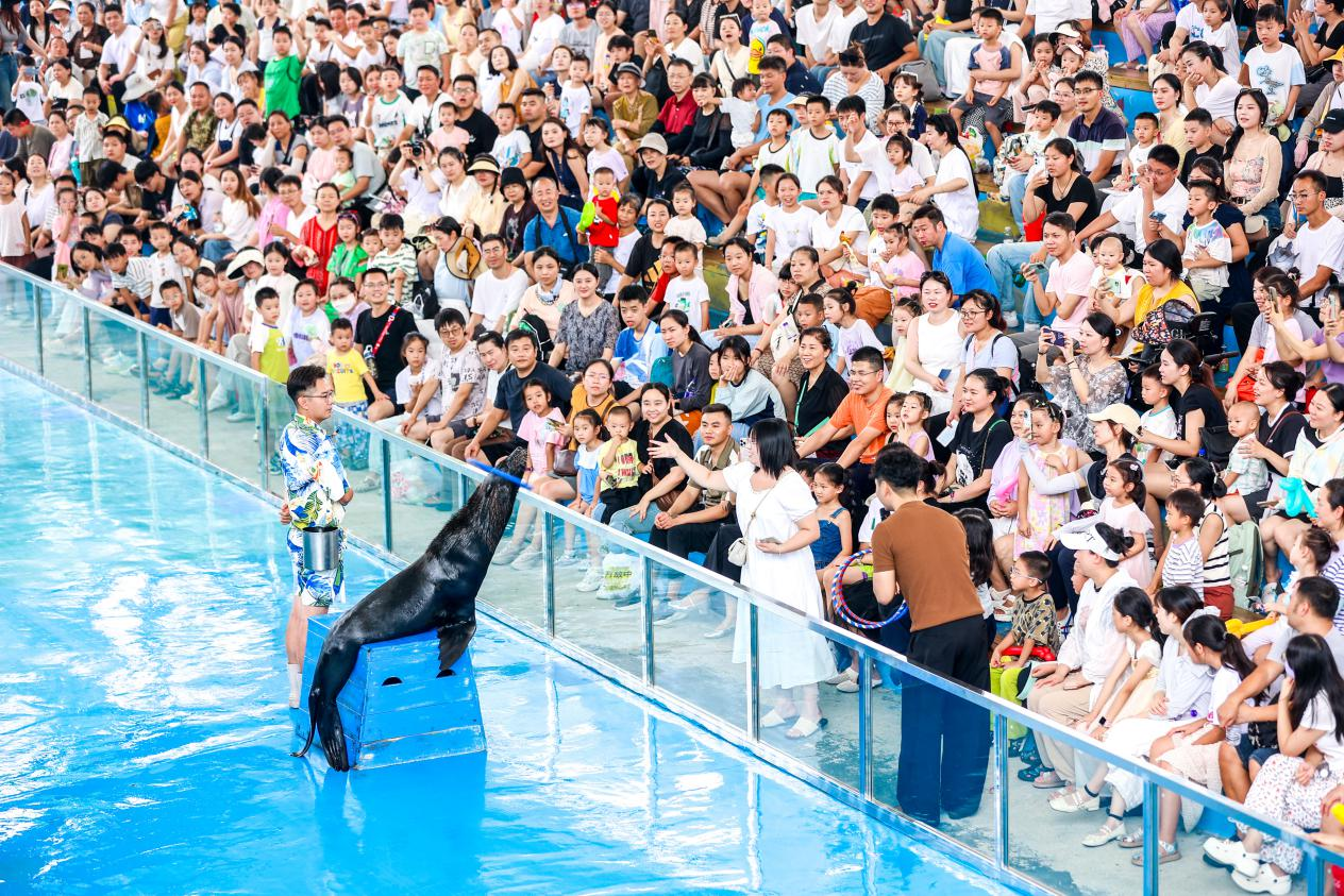 每到假期,深蓝探秘海洋馆便会迎来众多研学团队,学生在这里组成“奇趣科考队”,共同完成有趣的探索任务。在“深蓝探秘”“走向深蓝”等研学课堂中,大家能够近距离观察海洋生物习性,了解鲸落、巨藻生态系统等海洋知识,通过中国古代神话如精卫填海、郑和下西洋等历史故事,了解中国的海洋探索进程。其科普教育成效显著,在科普实践环节,学生们通过亲身观察和体验,加深对海洋生态系统和海洋保护的认识,在观看表演的同时,了解海洋生物多样性,培养海洋保护意识。这种寓教于乐的环境,让大家在轻松的氛围里收获成长,收获知识。“隔着玻璃就想触摸其中的海洋生物,海狮互动太精彩了!”参与研学活动的黄同学兴奋地说,这种沉浸式体验让抽象的书本知识变得生动立体。