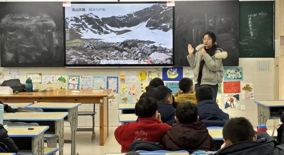 刘辛迪更引导孩子们回望校园:“操场边的香樟,叶片蜡质层锁水防冻,恰似寒带植物的‘铠甲’;花坛里的麦冬,叶片细密保温,堪比高山植物的‘保暖毛衣’。”