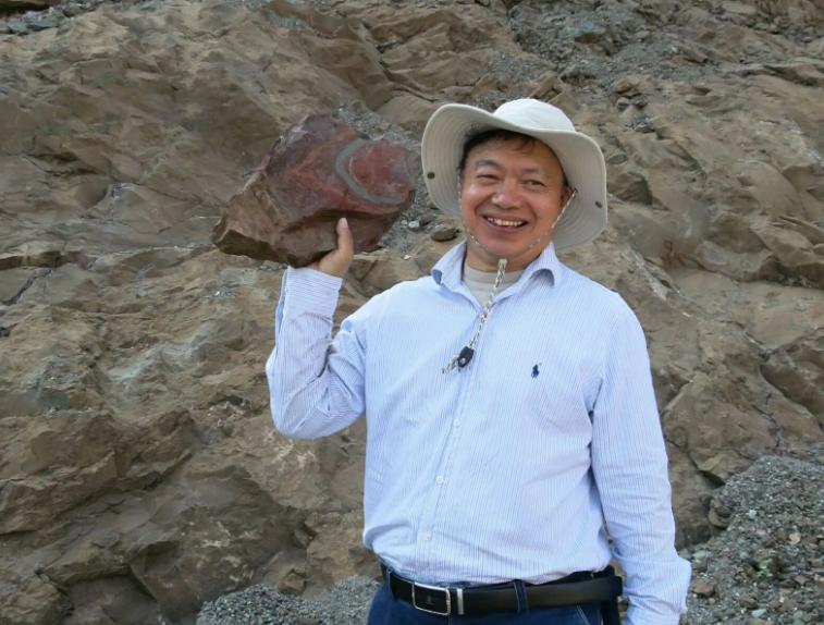 兴高采烈采集到色泽瑰丽硅质岩标本的马昌前教授