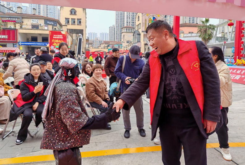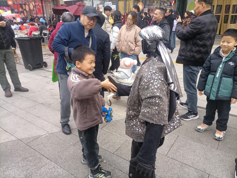 本次活动中,宜都市科协与市科技局联合打造的“创意科技展”成为本次活动中最具吸引力的展区之一。展区内,不仅有宇树科技带来的多款智能机器人进行动态演示,还设置了互动体验区,市民可近距离操作机器人、参与科学实验小游戏,感受人工智能与现代科技的魅力。在表演环节,机器人伴随着欢快的音乐节奏,完成了一系列流畅的舞蹈动作,时而挥手致意,时而与小朋友握手击掌,甚至模仿传统礼仪行拱手礼,引发现场阵阵掌声。其拟人化的互动方式和稳定的运动控制能力,让围观群众惊叹不已,不少家长带着孩子驻足观看,并用手机记录下这未来感十足的瞬间。一位现场观众表示:“没想到在我们家门口就能看到这么先进的机器人表演,孩子们特别感兴趣,这就是科技的力量!”