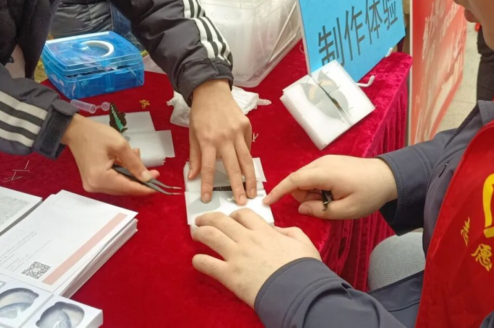 蝴蝶标本制作体验区,是本场活动最受欢迎的打卡点之一。博物馆的讲解员们提前准备好蝴蝶标本材料、硫酸纸、昆虫针、镊子等工具,现场手把手教学,从标本整理、展翅定位到基础固定,每一个步骤都细致讲解、耐心指导。