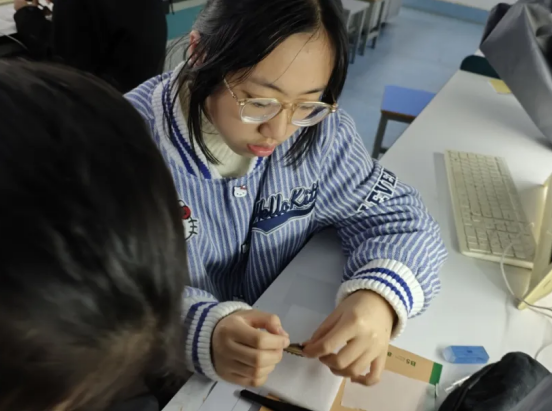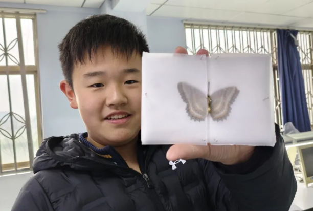 制作时,老师先示范标本整理步骤,指导同学们用镊子展平蝴蝶翅膀,梳理触角和足的姿态;再教大家将蝴蝶固定在展翅板凹槽,用大头针沿翅缘固定并调整至对称,整理好触角形态。最后讲解标本干燥保存要点,告知需置于通风干燥处定型,做好种类、制作时间的标注。