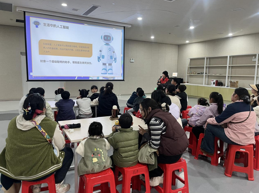 活动中,科普老师以“人工智能是什么”这一趣味话题巧妙开场,带领同学们寻找人工智能应用于日常生活的场景,手机解锁的人脸识别、随问随答的语音助手、商场里的导航机器人……让原本看似遥远的人工智能变得触手可及,通过老师对“机器像人一样思考和做事”核心内涵的阐释,让孩子们读懂AI的基础奥秘,明白了现代科技对人类生活品质提升的重大意义。