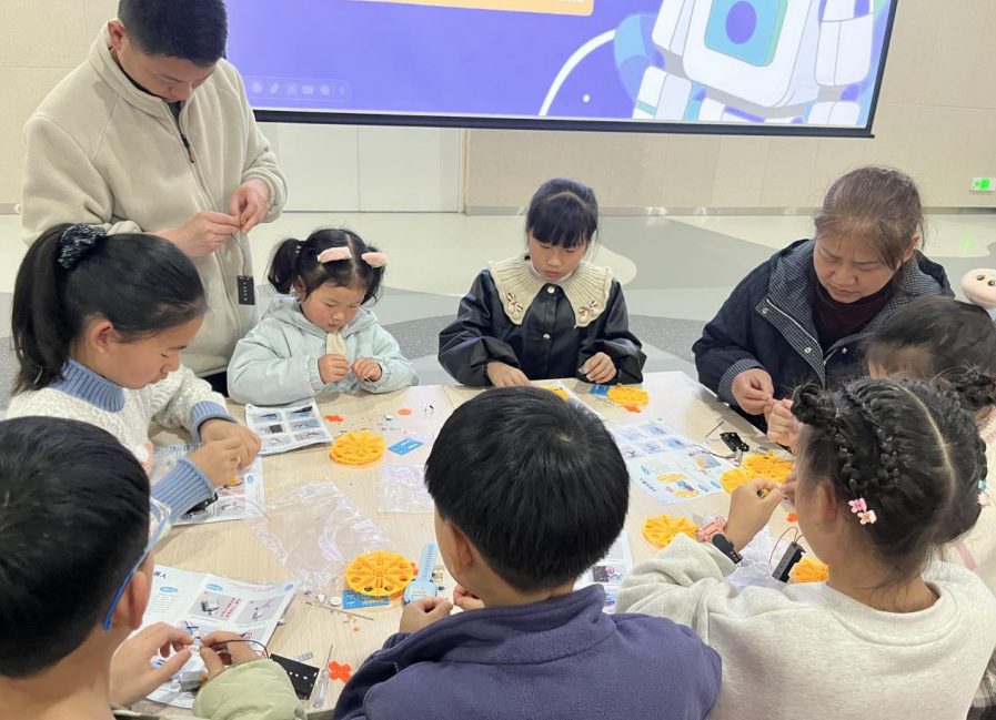 随后的平衡机器人拼装实践将活动氛围推向高潮。孩子们化身“小小科学家”,在老师的指导下,手握零件,全神贯注地拼装、调试。从零件组合、线路连接,到平衡校准、功能测试,每一步都凝聚着他们的专注与探索精神。在亲手搭建的过程中,孩子们直观领略到人工智能与机械原理融合的魅力,于反复尝试中锻炼了动手能力与逻辑思维,收获了科技实践的乐趣与成就感,也深刻理解了人工智能作为工具的应用本质。