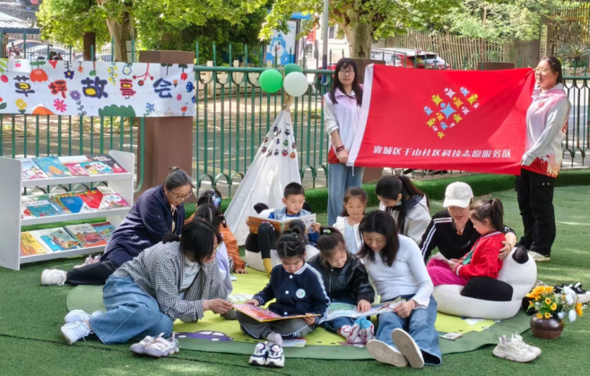 最美人间四月天,书香氤氲伴童行。在第31个世界读书日来临之际,为丰富社区文化生活,深化“千山一家亲”党建品牌内涵,营造全民阅读的良好氛围,4月17日,襄阳市襄城区隆中街道千山社区科协联合传诚宏伟幼儿园,举办了一场以“书香伴成长·共读润千山”为主题的春日草坪故事会。二十余组亲子家庭、社区志愿者与幼儿园老师们相聚一堂,以书为媒、以知为翼,在书香中感受阅读乐趣,凝聚邻里温情。
