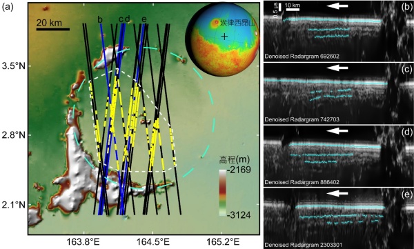 此次,科研人员利用火星轨道浅表探测雷达SHARAD的观测数据,对埃律西昂平原中东部的一个掩埋撞击坑进行了深入研究。他们发现,该掩埋撞击坑内基本存在两层地下反射,其中浅层反射几乎覆盖了整个撞击坑,而深层反射仅覆盖了撞击坑西南的部分区域。