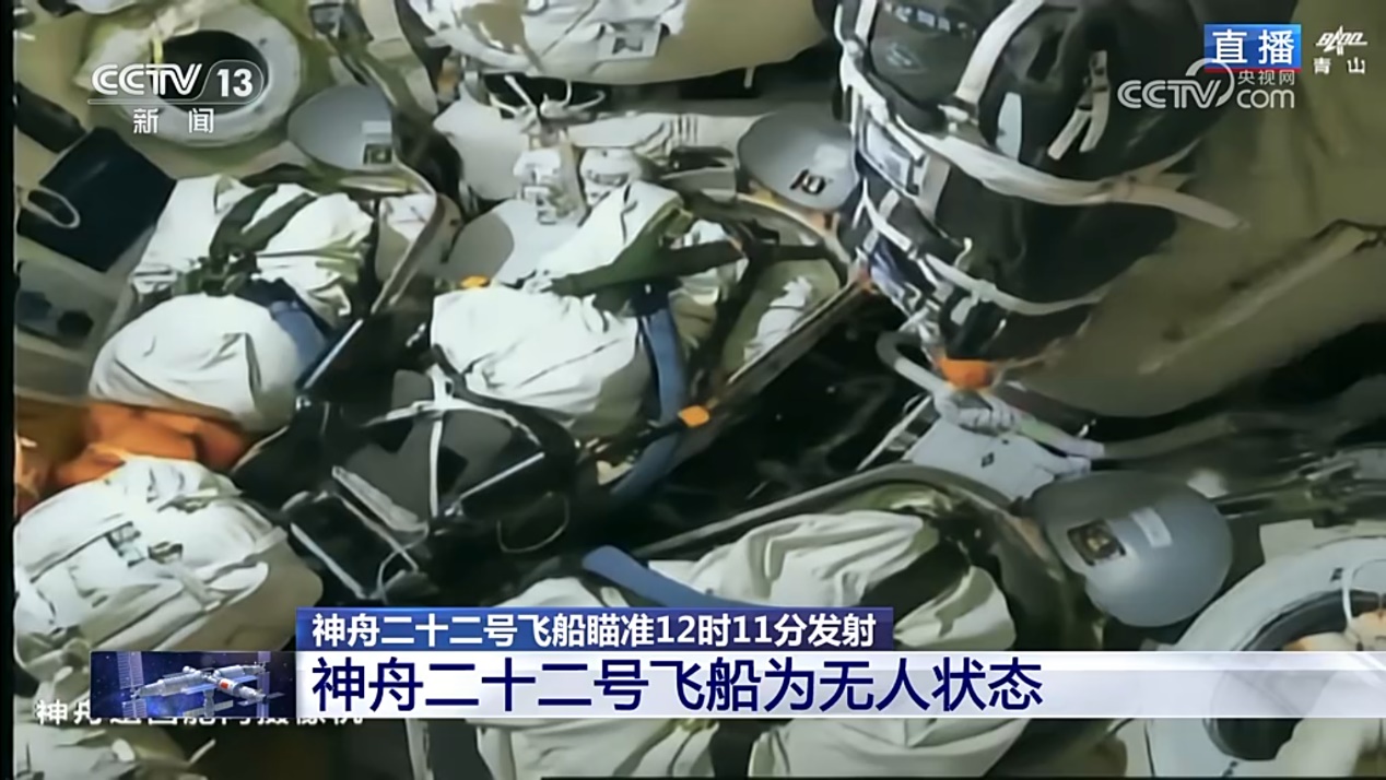 神舟二十二号飞船为无人状态 图片来源:央视新闻截图