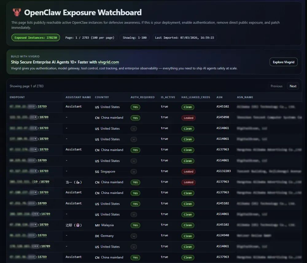 该网站记录了目前有漏洞可公开访问的龙虾,以提醒用户及时修补漏洞