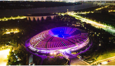 夜空下的科技馆灯火璀璨