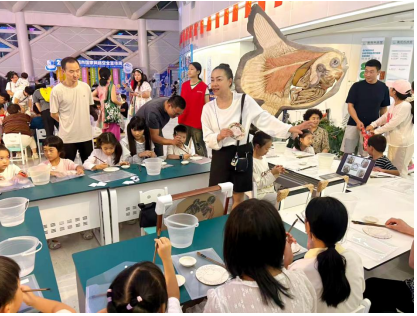 “星夜创客营”区域散发着艾草与薄荷的清香。孩子们在科技辅导员指导下缝制古法驱蚊包,学习传统防蚊智慧。在悬浮灯制作台,学生们亲手制作属于自己的“悬浮灯”,点亮科学智慧。非遗科普画也吸引了不少艺术爱好者,体验者们精心雕刻、层层晕染,寓教于乐间感受非遗文化与科技碰撞的魅力。
