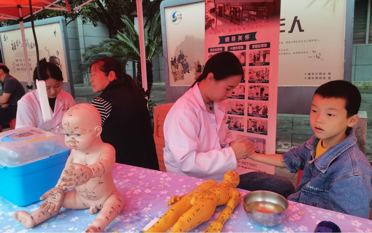 活动以“科技之智护健康 科普之力惠民生”为主题,巧妙融合科技与传统中医,打造健康科普盛宴。其中,茅箭区二堰街办源园社区卫生服务中心专家工作站的“湖北省非物质文化遗产——永宝刘氏祖传小儿推拿疗法”成为全场焦点。专家通过现场讲解、模型演示等方式,将晦涩的医学理论转化为通俗易懂的知识,向市民科普小儿推拿的保健与防病功效。活动现场还设置了免费体验环节,专家工作站的工作人员一边进行推拿操作,一边解答家长疑问,亲手指导推拿手法,有效普及了儿童健康养护知识。