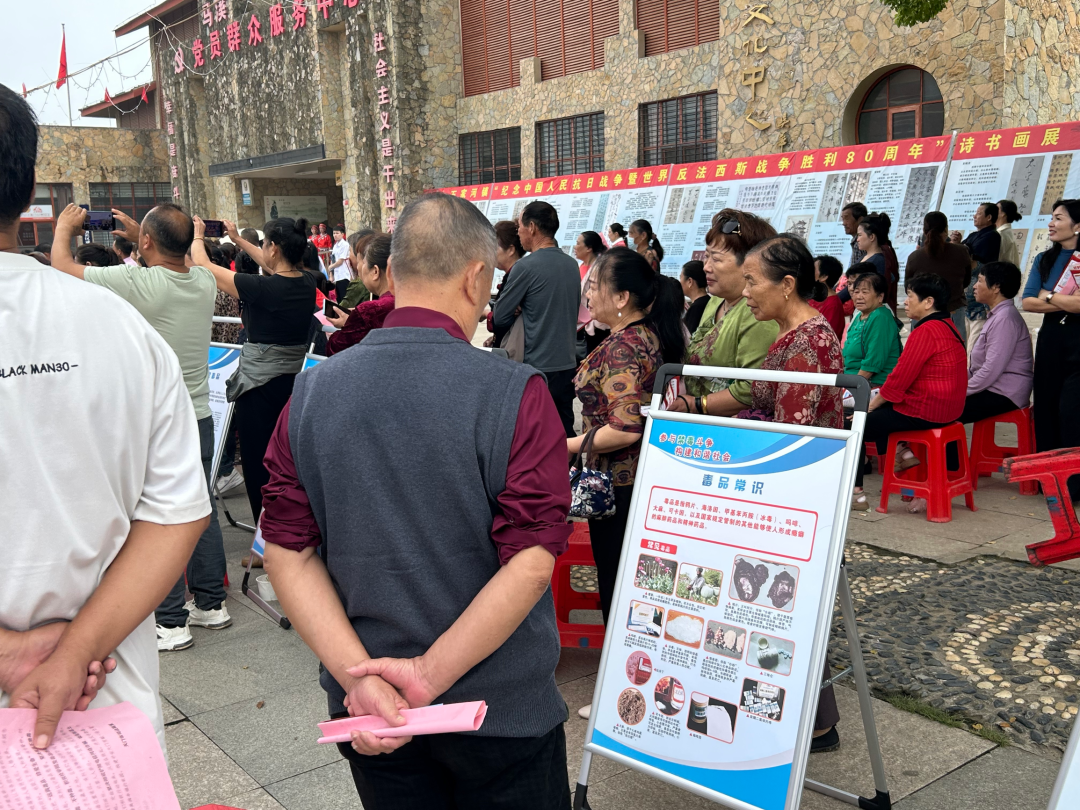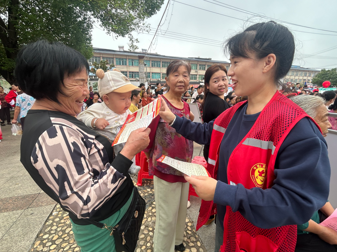 活动中,一支身穿红马甲的志愿者队伍默默地忙碌不停,他们在文艺汇演前后和间隙,穿梭于人群中,通过发放宣传册和进行现场讲解,向居民们宣传鼓励生育及育儿补贴政策和禁毒等法律法规知识。现场设置的关于交通安全、健康科普等内容的宣传展板也人气十足,吸引了众多居民驻足观看。