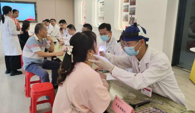 义诊当天,志愿者全程参与服务保障,有序进行场地布置、流程引导和秩序维护,并为高龄、行动不便的居民提供“一对一”贴心陪伴,确保义诊流程顺畅、服务周到。协和东西湖医院外科第一党支部派出多学科专家团队,为居民提供疾病诊疗、健康咨询和彩超检查等服务。针对甲状腺结节、慢性病管理等常见问题,专家们耐心解答并给予专业建议,让居民在家门口享受到便捷、准确的健康服务。