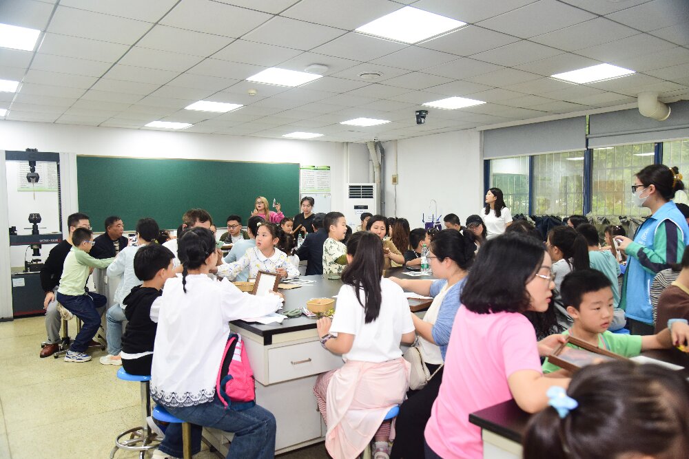 参观结束后,亲子家庭一行来到园艺林学学院,参与“相框贴画”园艺手工体验。工作人员提前准备了各类植物切片、柑橘切片、相框底板及环保胶水等材料,园艺林学学院愈见工作室的杨雪老师,以介绍学科特色文化为引导,孩子们发挥想象力,将植物干花的自然形态与色彩转化为艺术创作的素材。孩子们拼贴出花朵、小动物、风景等多样图案。现场欢声笑语不断,亲子协作的温馨场景成为活动中又一抹亮色。一位妈妈表示:“孩子不仅学会了如何搭配颜色和形状,还在互动中增进了与家长双向了解,在温馨的环境下激发了对生活细节的观察与热爱。”