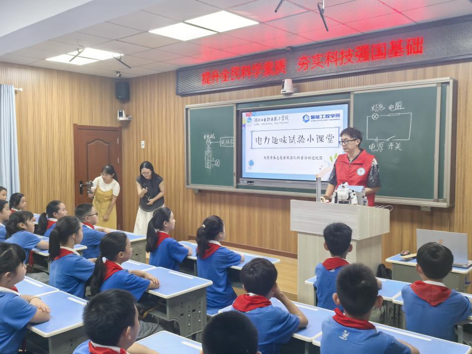 生命安全体验区内,静电体验仪和伤害体验装置吸引了众多同学前来围观体验。参与者将手放在静电体验仪上,头发瞬间竖起。伤害体验装置则让同学们亲身感受到电流的轻微触感。科普志愿者现场讲解了电流形成原理和安全用电的重要性,这种“体验+讲解”的方式,将抽象的电学知识变得具体可感,在激发科学探索兴趣的同时,也增强了大家的用电安全意识和自我保护能力;在电力趣味实验课堂上,志愿者们通过“水果电池制作”“静电感应实验”等环节,将抽象的电力知识转化为生动有趣的互动体验。同学们亲手连接电路,在实践中理解了发电、输电和用电的基本原理,不仅激发了对电力科学的兴趣,也培养了动手能力和科学思维。