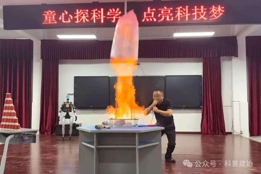 上午9时,活动在热烈气氛中拉开帷幕。科学实验秀率先将学生热情推向高潮:“空气炮”呼啸而出,无形气流形成清晰烟圈,精准击倒远处纸杯;“手掌火焰”实验在确保安全前提下,展示掌心跃动火焰却毫发无伤,原理讲解深入浅出。互动环节同学们踊跃参与,展现出良好的科学素养和探索兴趣。