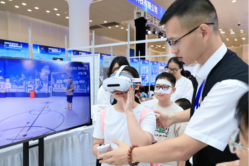 除此之外,我的宇宙(深圳)科技有限公司展台前,排起了长长的队伍,小朋友们争先恐后地进行VR体验,感受虚拟与现实的碰撞乐趣。